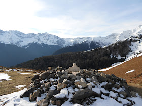 Voilà le col, (1h20 depuis le départ) le sol est gelé. En même temps on est en montagne et c'est l'hiver donc rien d'anormal !! ;-)