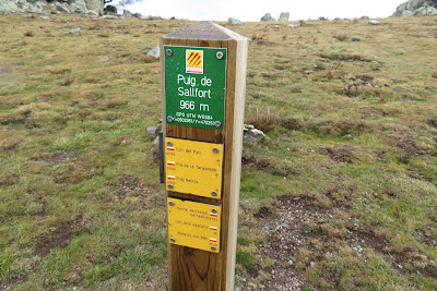On arrive à un embranchement. On abandonne le GR10 pour suivre le marquage jaune qui va en direction du coll de Verderol. On va contourner le puig de Sallfort qu'on a prévu de faire au retour.