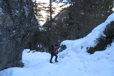Toujours les raquettes au pied, on descend tout droit dans une neige devenue bien molle.