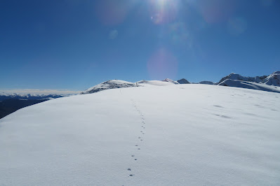 On décide de s'éloigner du sommet en continuant un peu sur la crête.