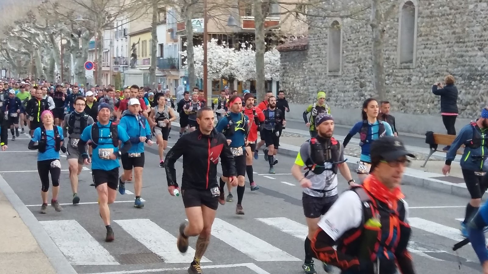 On vient de passer le premier ravitaillement. Je ne me suis pas arrêté. On va avoir droit à une partie roulante.Puis une descente raide et technique. Pas de cailloux sur le sentier. Depuis ma blessure à Gruissan, j'ai toujours une petite douleur au pied et à la cheville. Je descends prudemment, j'appréhende de me refaire mal. Je vais perdre quelques places mais tant pis !